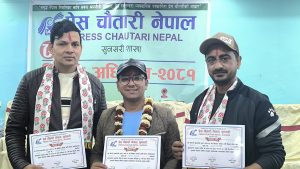 निर्वाचित कार्यसमितिलाई प्रेस चौतारी नेपालका केन्द्रीय अध्यक्ष गणेश बस्नेतले सपथ ग्रहण गराएका थिए ।
