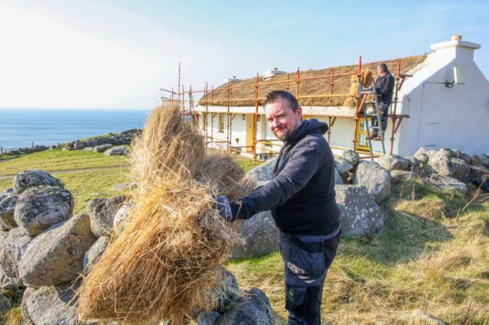 आयरल्याण्डको नयाँ स्कूल आय उकाएको छाना बचाउन आयरिश परिदृश्यलाई बचाउन बोलपत्रमा तालनको नयाँ पुस्ताको तालिम दिइन्छ। भजुनो विद्यार्थीहरूको भजूनीमा हल छत हिप्रिंग स्कूलका छातीमा दाँजिएको छीकूले हजुरआमाको पचेक छीहरू, ईआरल्याण्डको अन्तिम मास्टर किकर्शी मध्ये एक हो। “यो हो, इभोहरू सुरु गर्नुहोस् र त्यहाँबाट काम गर्न,” ले 722-वर्ष पुरानो, एक विद्यार्थीले निर्मित मोडेल घरको शीर्षमा फ्याक्ड पराल को रूपमा माथि छ।