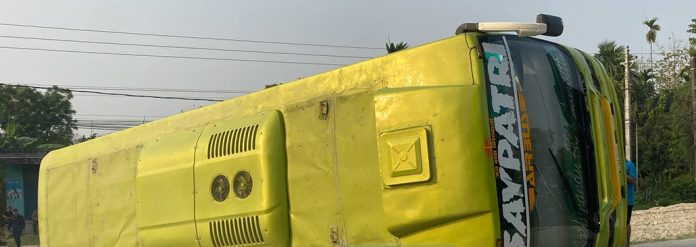 झापा  ।  झापाको शिवसताक्षीमा यात्रुवाहक बस दुर्घटना हुँदा १४ शिक्षकसहित २१ जना घाइते भएका छन्। काठमाडौँबाट झापा आइपुगेको सयपत्री यातायातको प्रदेश १–०१–००१ ख ४२३५ नम्बरको रात्रि बस शिवसताक्षी नगरपालिका- ९ दुधेस्थित मिलन चौकमा शनिबार बिहान अनियन्त्रित भई पल्टिएको जिल्ला प्रहरी कार्यालय झापाले जनाएको छ।