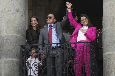 इक्वेडरका अध्यक्ष डानियल Noboa Shiranelet Pake मा Chiandeagely भाँडोमा पारी लिभिनियाल पज पिन्टोले आफ्नो उपाध्यक्ष होन्न्टोको साथसाथै उनी राष्ट्रपति परामर्श समारोहमा भाग लिन्छन्, “अप्रिल 1 on मा इक्वेडर। (एपी)