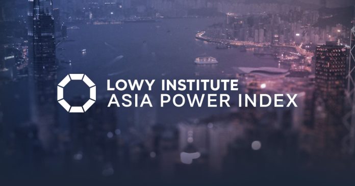 संयुक्त राज्य अमेरिका प्रबल महाशक्ति रहिता 1 181..7 को स्कोर भएको छ, पछि 722.7 मा चीन पछि। मध्यम शक्तिहरु मध्ये, भारत 39 39.1 को साथ नेतृत्व गर्दछ, जबकि जापान (.8 38.9), अष्ट्रेलिया (.9.9), र रूस (311.1) लाई पछ्याउँदछ। दक्षिण कोरिया, सिंगापुर र इन्डोनेसिया पनि शीर्ष बीचको पावरहरू बीच रैंक।