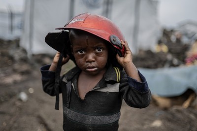एम23 विद्रोही र सरकारी सैनिकहरू बीचको लडाईमा विस्थापित भएको बच्चाले गोमा, डिजाइनन्त्रिकको शिविरमा डम्बर 11 मा कंगोको शिविरमा। (एपी)
