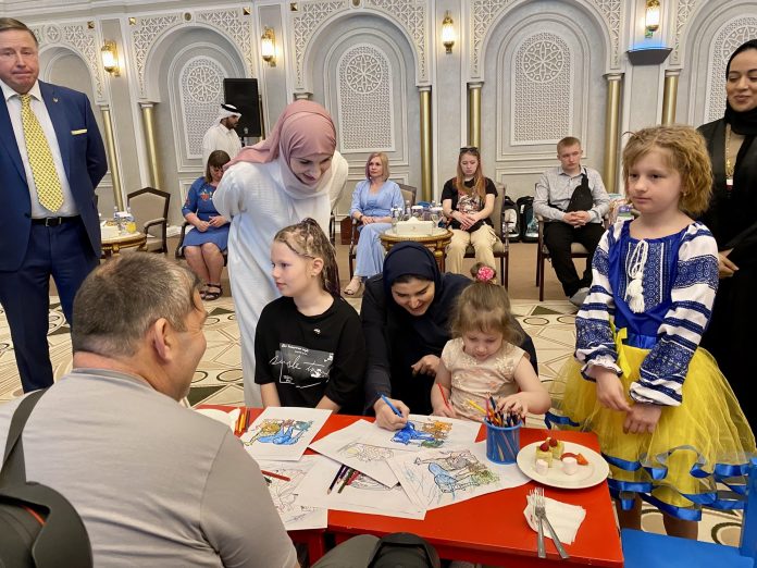 कतारी अधिकारीहरूले रुसी र युक्रेनी परिवारका लागि कूटनीतिक क्लबमा दुई अलग जमघट गरेका थिए, जहाँ उनीहरूले अन्तर्राष्ट्रिय सहयोग, मरियम अल मिसरियडका लागि कतार स्वागत गरे।