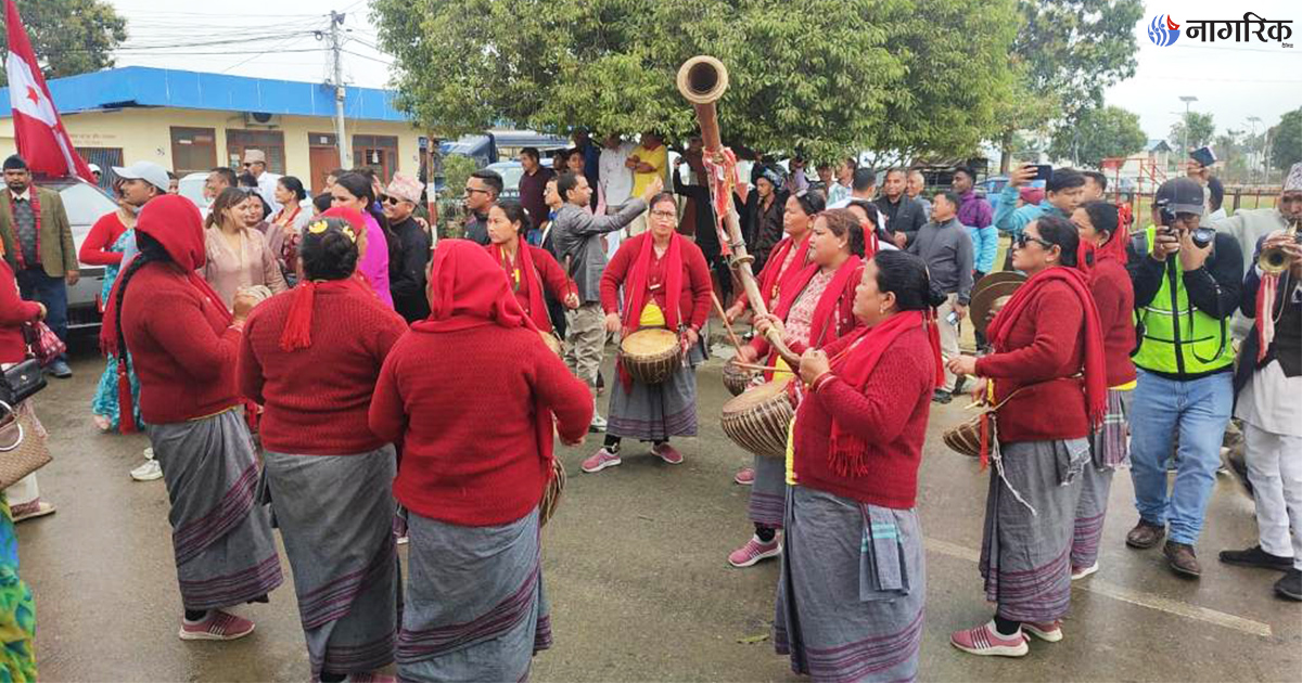 कांग्रेस महामन्त्री गगन थापालाई पञ्चेबाजासहित स्वागत