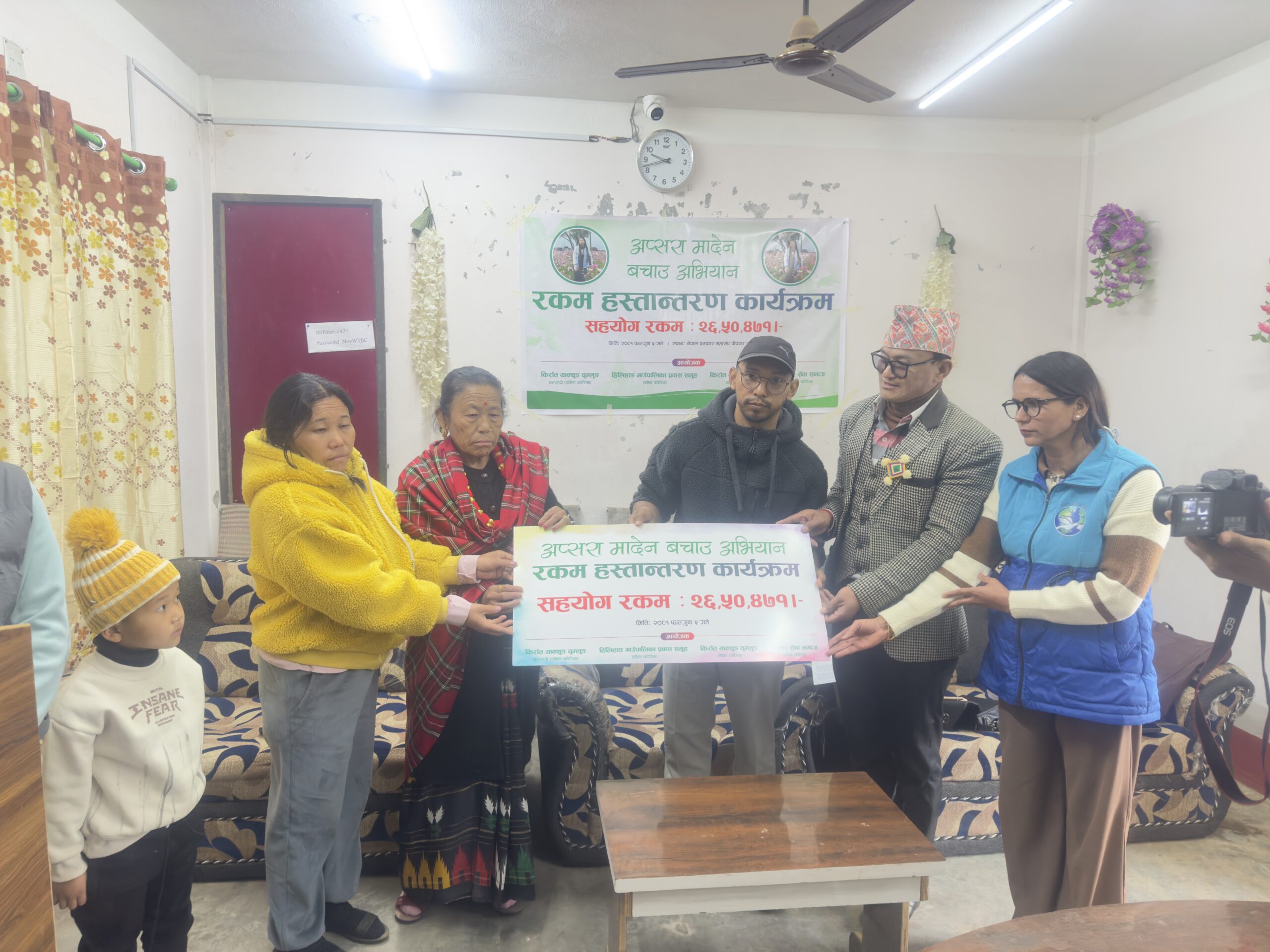 हिलिहाङ गाँउपालिका प्रवास समिति, किरात याक्थुङ चुम्लुङ छल्लादो शाखा र मादेनका साथीहरु मार्फत् रकम संकलन भएको जानकारी दिइएको छ ।