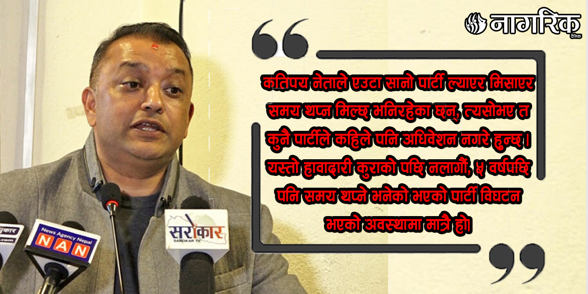 ‘केही नेताहरू अधिवेशनबारे बोल्नुभएको छ,’ गगनले भने, ‘तर नेपालको संविधान कानुन सबै कुराले २०८४ चुनावपछि महाधिवेशन गर्ने भन्ने कुरा दिँदैन।’