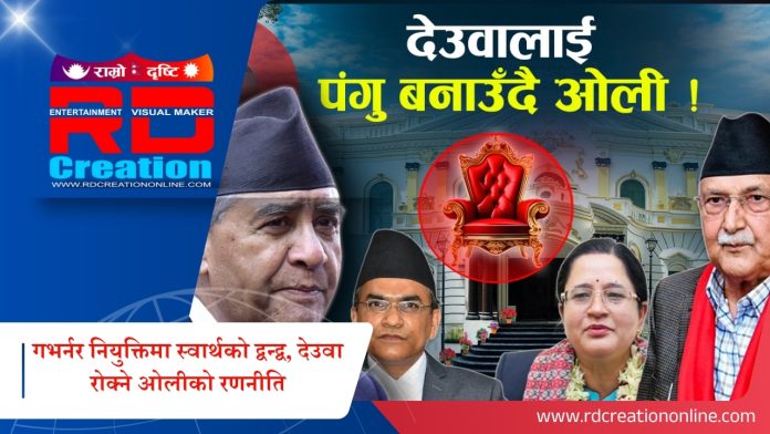 सत्तारुढ नेपाली कांग्रेस र एमालेबीच गभर्नर पदको दावीमै भिडन्त छ। कांग्रेसले आफ्नो उम्मेदवार विश्व पौडेललाई अघि सारेको छ भने एमालेले कार्यवाहक गभर्नर निलम ढुंगानालाई पदमा कायम राख्न चाहन्छ। प्रधानमन्त्री केपी शर्मा ओलीले ढुंगानालाई समर्थन गरेका छन्, तर कांग्रेस अध्यक्ष शेरबहादुर देउवाले यसलाई अस्वीकार गरी पौडेलको नाम दबाब सहित राखेका छन्।