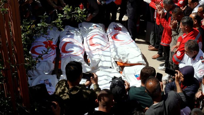 गाजा एड्स श्रमिकहरुले इजरायल, प्यालेस्टाइन रेड अर्धचन्द्रा द्वारा लक्षित ‘लक्षित’ भन्दै शरीर ‘सामूहिक चिहान’ बाट बरामद भएको छ। विश्व समाचार
