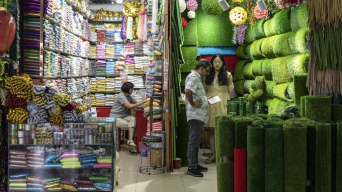YIWU अन्तर्राष्ट्रिय व्यापार बजारमा डोनाल्ड ट्रम्प क्राइटिन © Adkk Berry / AFP / getty छविहरू
