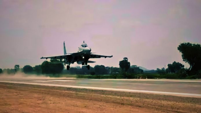 भारतीय वायुसेना ने शुक्रवार को उत्तर प्रदेश के शाहजहांपुर जिले में गंगा एक्सप्रेसवे के 3.5 किलोमीटर लंबे हिस्से पर अपने बहुप्रतीक्षित ‘लैंड एंड गो’ अभ्यास को अंजाम दिया. इस दौरान वायुसेना ने अपनी हवाई ताकत और सटीक उड़ान का शानदार प्रदर्शन किया.