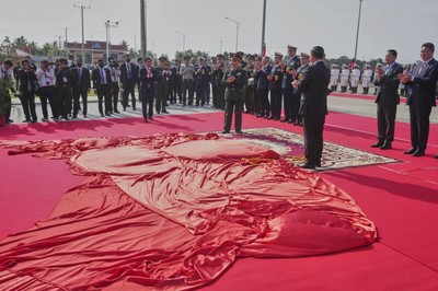 कम्बोडियन प्रधानमन्त्री Hun maut, केन्द्र दायाँ, र शीर्ष चिनियाँ सेना Qune एचएन बिरालो, कम्मै कम्बोडियाको आधिकारिक, क्यानल डोरीहरू, सौन्दणमा, सौन्दणमा, सौन्दाप टुप्पो, (एपी)