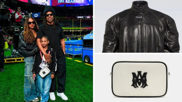 जे-z सबै मुस्कानहरू उनका छोरीहरू निलो आईभी र मैदानमा मैदानमा थिए आइतवार नयाँ orllans मा सुपर बाउल lix खेल।