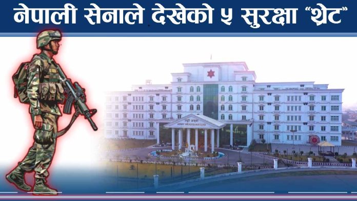 नेपाली सेनाले मुलुकमा नयाँ किसिमको सुरक्षा चुनौति बढेको निष्कर्ष निकालेको छ । सैनिक मुख्यालय जंगी अड्डामा बिहीबारदेखि सुरु भएको दुई दिने पृतनापति समन्वयात्मक बैठकमा प्रधानसेनापति अशोकराज सिग्देलले नेपालमा बहुआयामिक किसिमका सुरक्षा चुनाति थपिने क्रम शुरु भएको भनेका छन् ।