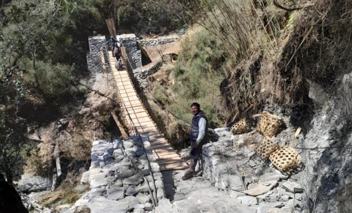 ढोरपाटन–गुर्जा पदमार्गमा काठे पुल निर्माण