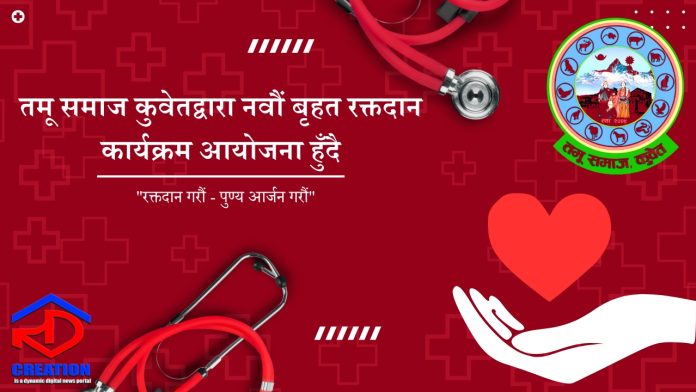 जाब्रिया, कुवेत – तमू समाज कुवेतले आगामी २३ मे २०२५ (शुक्रबार) का दिन नवौं बृहत रक्तदान कार्यक्रम आयोजना गर्ने भएको छ। कुवेतको जाब्रियास्थित सेन्ट्रल ब्लड बैंकमा दिउँसो ठिक २ :०० बजेदेखि सञ्चालन हुने यस कार्यक्रममा कुवेतमा रहेका सम्पूर्ण नेपालीहरूलाई सहभागी हुन आयोजकले हार्दिक अनुरोध गरेको छ।