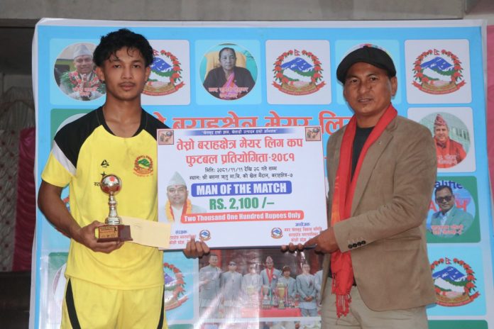 जितका लागि म्यान अफ द म्याच अमिन श्रेष्ठले २ गोल गरेका थिए । उनलाई बराहक्षेत्र-१ का वडाध्यक्ष किसन थापाले नगद २ हजार १ सयसहित ट्रफी हस्तान्तरण गरे ।