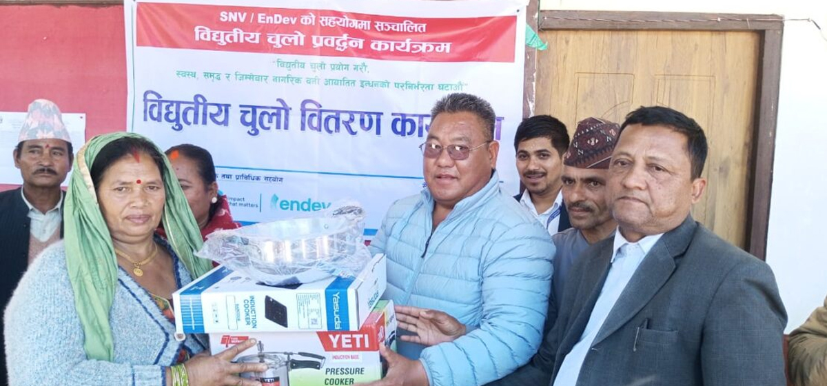 ‘दाउरा र ग्यासको खपत घटाएर जलवायु परिवर्तनको असर न्यूनीकरण गर्दै वातावरण संरक्षण गर्ने उद्देश्यले एसएनभी र इन्डेभको सहयोगमा विद्युतीय चुलो वितरण गरिएको हो,’ उनले भने, ‘यसले विद्युतको खपत बढाउनुका साथै वन जङ्गलको संरक्षणमा टेवा पुग्ने विश्वास हामीले लिएका छौँ ।’