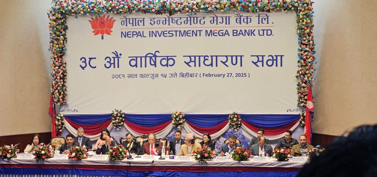 नेपाल इन्भेष्टमेन्ट मेगा बैंक लिमिटेडले आर्थिक वर्ष २०८०र८१ को ३८ औँ वार्षिक साधारणसभा सम्पन्न भएको छ ।