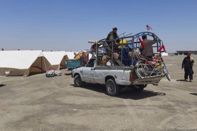 एक अफगानी शरणार्थी परिवार एक ट्रान्जिट स्ट्यान्डर्स, चैतुन, चैतुन शरणार्थी, चैतुन, पाकिस्तान र अफगानिस्तान सीमाना मा एक सीमाण क्षेत्र को निर्वासन, (एपी)