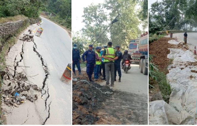 चितवन, गत वर्ष असोज १० गतेदेखि अविरल वर्षाका कारण धसिएको पृथ्वी राजमार्ग (कृष्णभिर खण्ड) को मर्मत कार्य अन्तिम चरणमा पुगेको छ। करिब १०० मिटर लामो र दुई मिटर चौडा सडक ५० सेन्टिमिटर सम्म धसिएको थियो, जसलाई अहिले माइक्रोपाइलिङ र होरिजन्टल रक एङ्करिङ प्रविधिबाट जगाइँदै छ।
