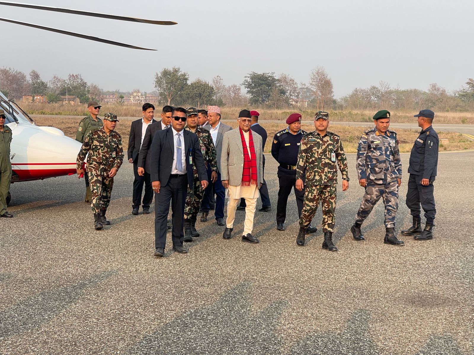 प्रधानमन्त्रीसँगै नेकपा (एमाले) महासचिव शङ्कर पोखरेल, लुम्बिनी प्रदेशका मुख्यमन्त्री चेतनारायण आचार्य, राष्ट्रियसभाका पूर्वसदस्य कोमल वलीलगायतले विमानस्थल अवलोकन गरे।