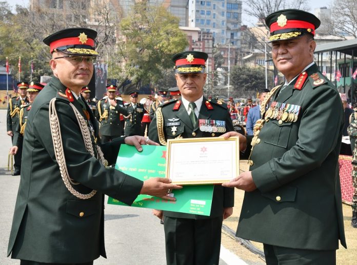 त्यस अवसरमा प्रधान सेनापतिले सेना दिवस-२०८१ को उपलक्ष्यमा प्रधान सेनापति प्रशंसा निशान प्राप्त गर्ने रथीवृन्द, अधिकृत, पदिक तथा अन्यदर्जालाई प्रधान सेनापति प्रशंसा निशान प्रदान गर्नुका साथै मानार्थ उपसेनानी दर्जामा पदोन्नति भएका पदिकहरुलाई दर्ज्यानी चिन्ह प्रदान गरे ।