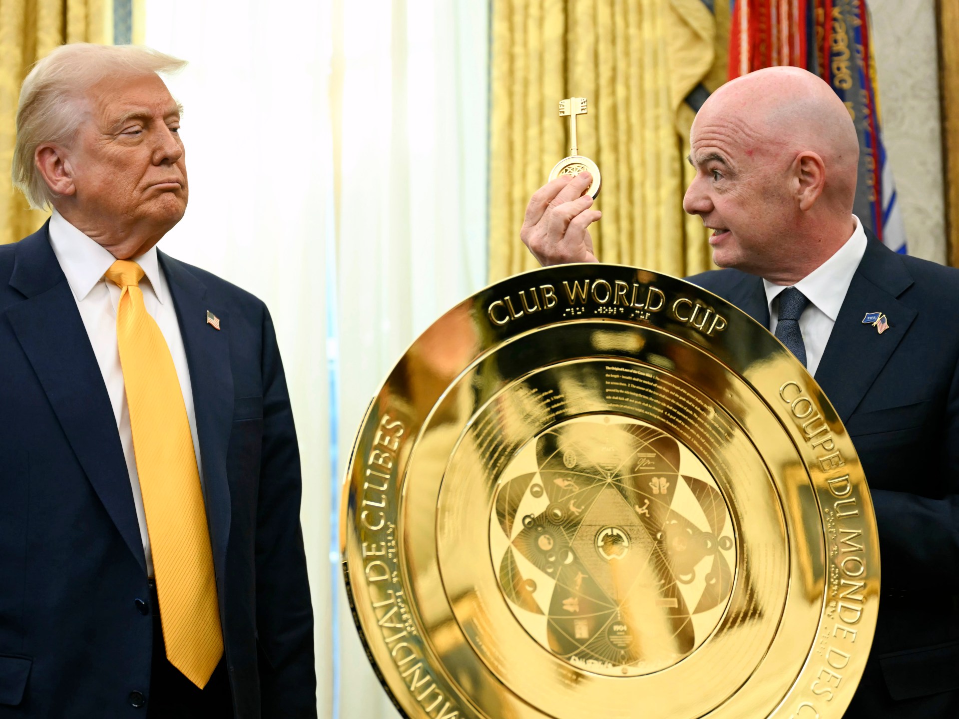सुनौलो ट्रफी यस महिना चारैम राष्ट्रपति जियाननी जियोनी एनिटीले यसलाई राष्ट्रपति डोनाल्ड ट्रम्पमा पठाएर हेल्प हाउसमा बसिरहेको छ।
