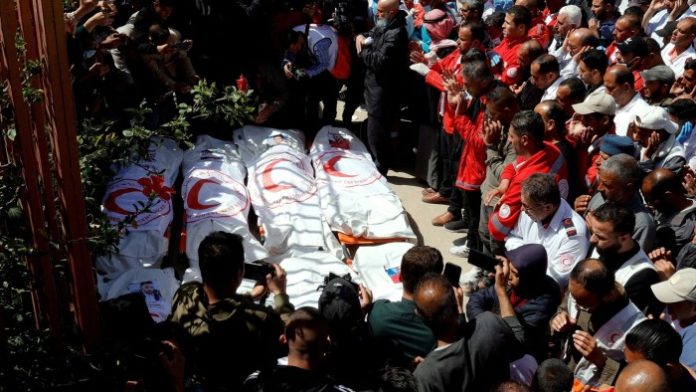 इजरायली सेनाले मार्च 2 on को शुरुवातको घण्टाको दौडान उनीहरूको शरीरका सवारीसाधनमा गाड्दै गरेको घरको लामो समय नजिकै उनीहरूको शरीरका चाँदीको रफहको नजिकैको 1 med प्यारामेडिक्स र पहिलो प्रतिक्रियाहरू भेट्टाए जुन उनीहरूको कुटपिट गर्ने सवारीसाधनहरू पनि भेट्टाए।