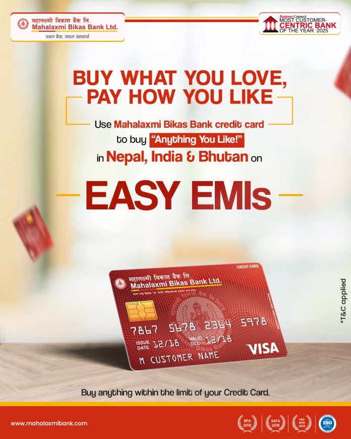 महालक्ष्मी विकास बैंकले क्रेडिट कार्ड ग्राहकहरूलाई मासिक किस्तामा भुक्तानी सुविधा सुरु गरेको छ