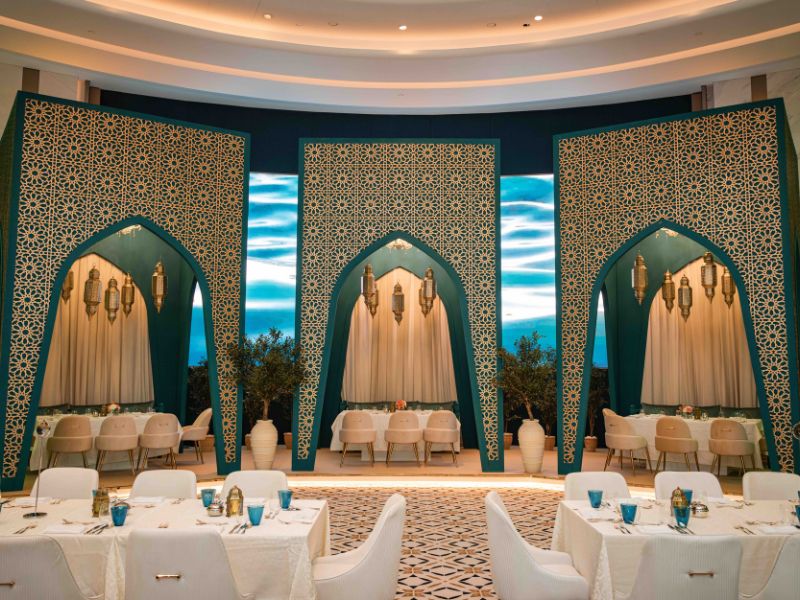 समुद्रबाट प्रेरणा पाउँदा यो रमधानको अनुभव सेन्ट रेटर बन्डरूममा बसाई ल्याइएको छ, जहाँ हरियो र गोल्डल एक परिष्कृत र आमन्त्रित इंडाइनिंग सिर्जना गर्न।