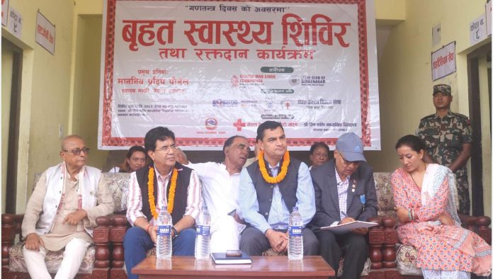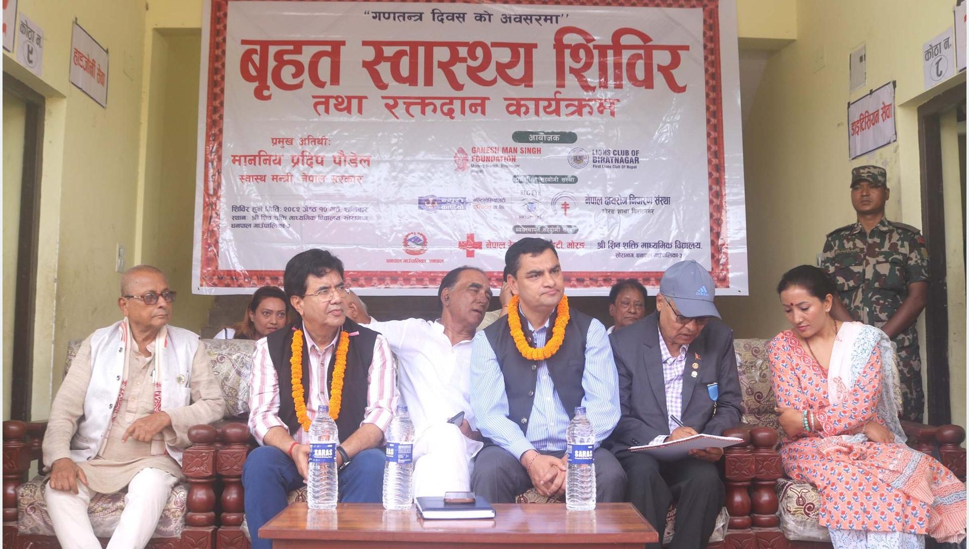 गणतन्त्र दिवसको अवसरमा गणेशमानसिंह फाउण्डेशन, नेपाल रेडक्रस सोसाइटी र लायन्स क्लब अफ विराटनगरले धनपालथान गाउँपालिका–३, सोराभागमा आयोजना गरेको बृहत् स्वास्थ्य शिविरको उद्घाटन गर्दै मन्त्री पौडेलले स्वास्थ्य सेवालाई सहज र सर्वसुलभ बनाउन राज्यले लगानी बढाउनुपर्ने बताए।