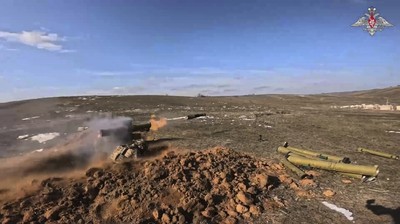 युकेरेटिन मन्त्रालयमा वितरण गरिएको भिडियोबाट लिइएको यस फोटोमा UKRaine 1 dress रसियन सैनिकहरूमा प्रयोग गर्ने क्रममा एन्टी ट्या tank ्की मिसाइलमा एन्डी-ट्या ake ्की मिसाइलमा। (एपी)