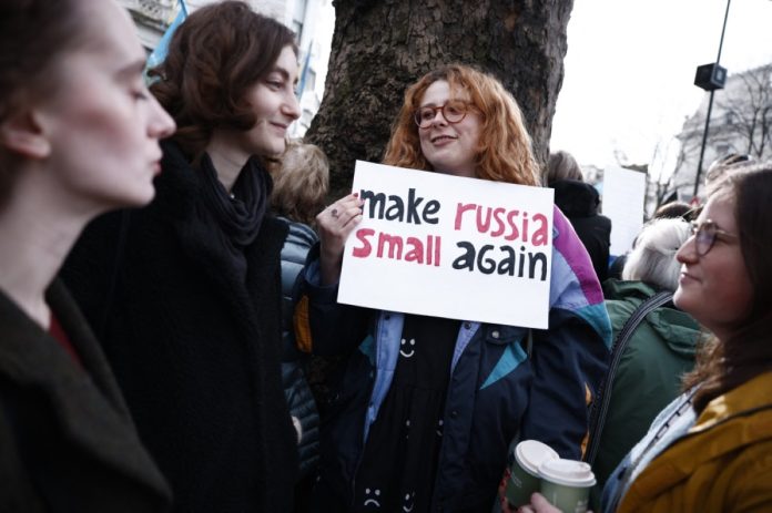 लन्डन: सयौं शनिबार लन्डनमा यूक्रेनको समर्थनमा सोमबार रसियाको कडा वार्षिकको तेस्रो वार्षिकोत्सवमा सोमबार र वाशिंगटन र किस्ता बीचको तनावमा बढेको थियो। प्रदर्शनकारीहरू पश्चिम लन्डनमा रहेको एकेरेन्सिनको एक राष्ट्रिय सन्तको मूर्ति, र रूसी दूतावासको दिशामा गए। तीन बर्ष लामो युद्ध युक्रेनमा रूसी आक्रमण पछि फेब्रुअरी 2 ,, 2022 मा भयो।