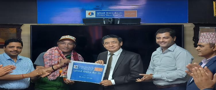 Homeअन्तर्राष्ट्रियलुम्बिनी विकास बैंकद्वारा पर्वतारोही शेर्पालाई ब्यानर हस्तान्तरण