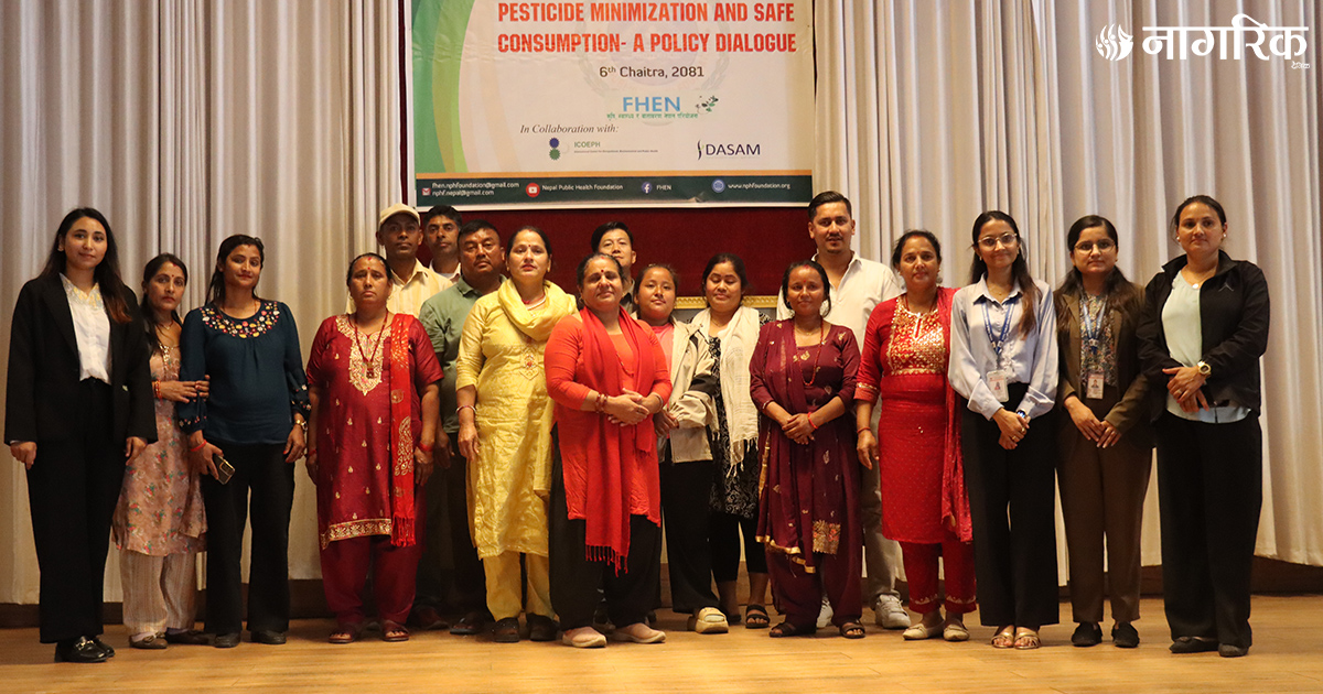 नेपाल जनस्वास्थ्य प्रतिष्ठानअन्तर्गत कृषि, स्वास्थ्य र वातावरण नेपाल परियोजनाले बुधबार भरतपुरमा आयोजना गरेको कार्यक्रममा सहभागीहरूले नेपालमा उत्पादित तथा आयातित तरकारीमा विषादीको अत्यधिक प्रयोग भइरहेको भन्दै कानुनी व्यवस्था गरी विषादीको न्यूनीकरण गर्नुपर्ने धारणा राखे।