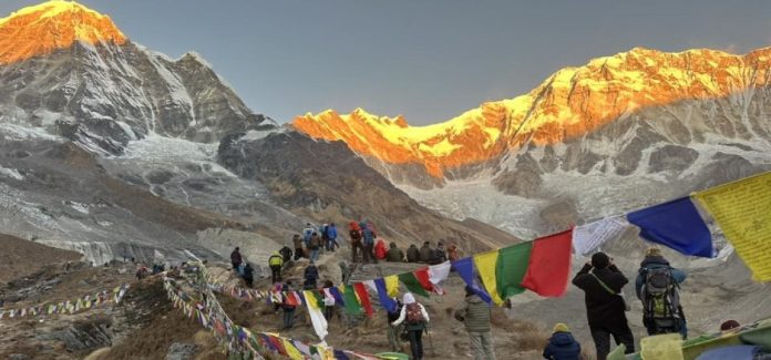 माछापुच्छ्रे आधारशिविरका होटलमा पाहुनाको भीड। तस्बिरः नागरिक