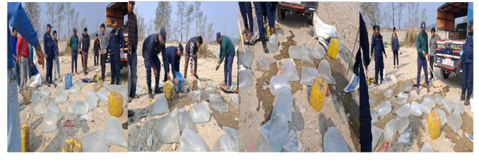 इलाका प्रहरी कार्यालय, अमलेखगंज बाराबाट खटिएको प्रहरी टोलीले बाराको जीतपुर सिमरा उप-महानगरपालिका वडा नं.२१ अमलेखगंज चोक स्थितमा हेटौडा बाट वीरगंज तर्फ आउँदै गरेको विभिन्न सवारी साधनहरू रोकी चेक जाँच गर्नेक्रममा लुकाई छिपाई राखेको २५ पोका र ५ ओटा गिलन अन्दाजी ७५० लिटर अवैध घरेलु मदिरा नियन्त्रणमा लिएको हो
