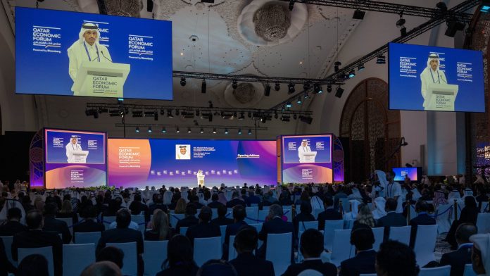 कतार आर्थिक फोरम (QEF) को पाँचौं संस्करण, ब्लूमबर्ग द्वारा संचालित हो, र राज्य, सरकारी अधिकारीहरू र अन्तर्राष्ट्रिय सीकास सहित विशिष्ट वक्ताहरूको रेखाचित्र प्रस्तुत गर्दछ।