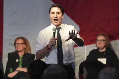 क्यानाडाका प्रधानमन्त्री जस्टिन त्ववेगुले फेब्रुअरमा टोरोन्टोमा क्यानाडा-अमेरिकी आर्थिक शिखर सम्मेलनलाई सम्बोधन गरे। (एपी)